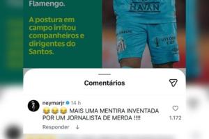 本轮巴甲联赛结束后,有媒体报道称内马尔曾主动联系主帅沃伊沃达,并承认在输给弗拉门戈的比赛中自己的过激行为确实过分。对此,内马尔在ge新闻网Instagram推文评论区直接回应:“这又是某个垃圾记者编造的谎言。”