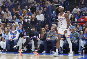 国王进攻打得热闹,但防守能力和雷霆存在巨大差距:维金斯强突威少、华莱士冲击拉文一条龙、多特强突德罗赞造杀伤、亚历山大一条龙过掉威少上篮,国王首发四后卫的防守能力都扛不住雷霆的点对点爆破