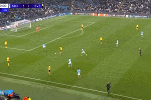 体育资讯11月06日讯 欧冠联赛阶段第4轮曼城vs多特第91分钟,谢尔基突破至禁区,在4人看防下起脚射门,皮球折射入网!曼城4-1多特蒙德!