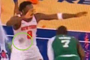😂发际线粉蹭掉了!杰伦-布朗的头一通乱蹭 OG球衣一大团黑